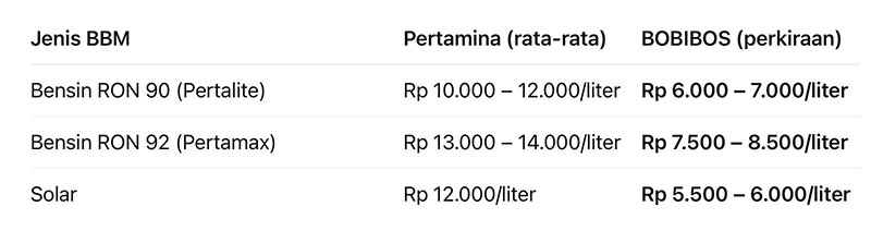 Analisis Perbandingan Harga & Efisiensi: Pertamina vs BOBIBOS